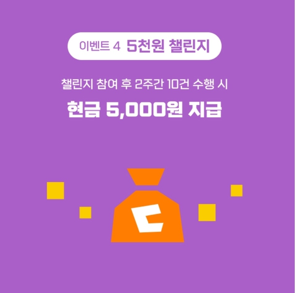 네 번째, 2주간 10건이상 진행시 현금 5천원이 추가 지급됩니다.